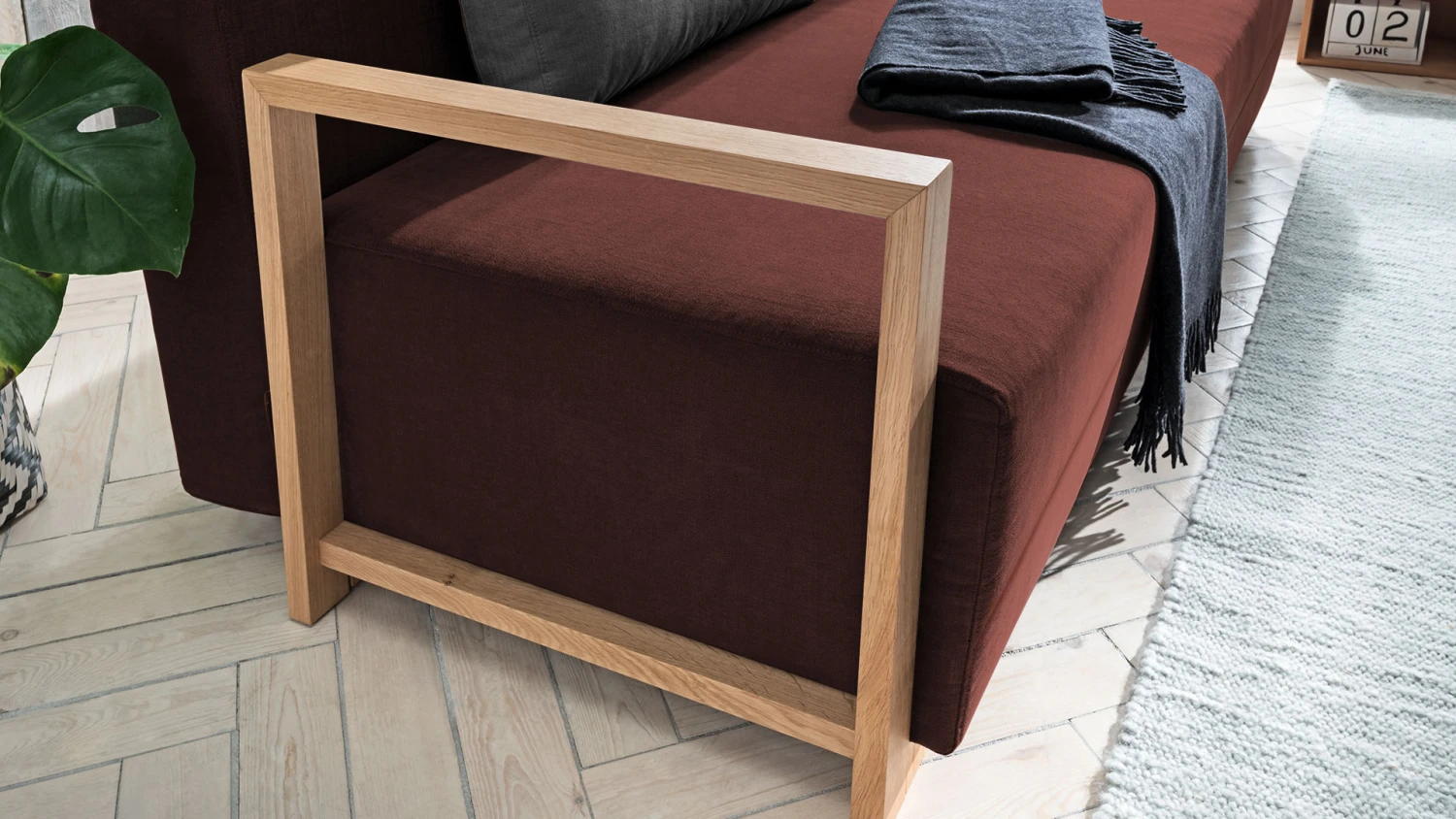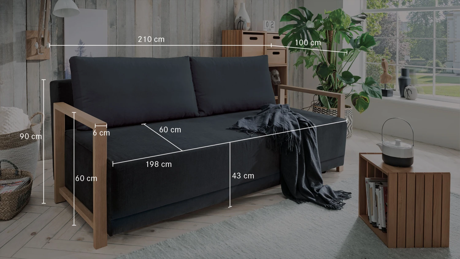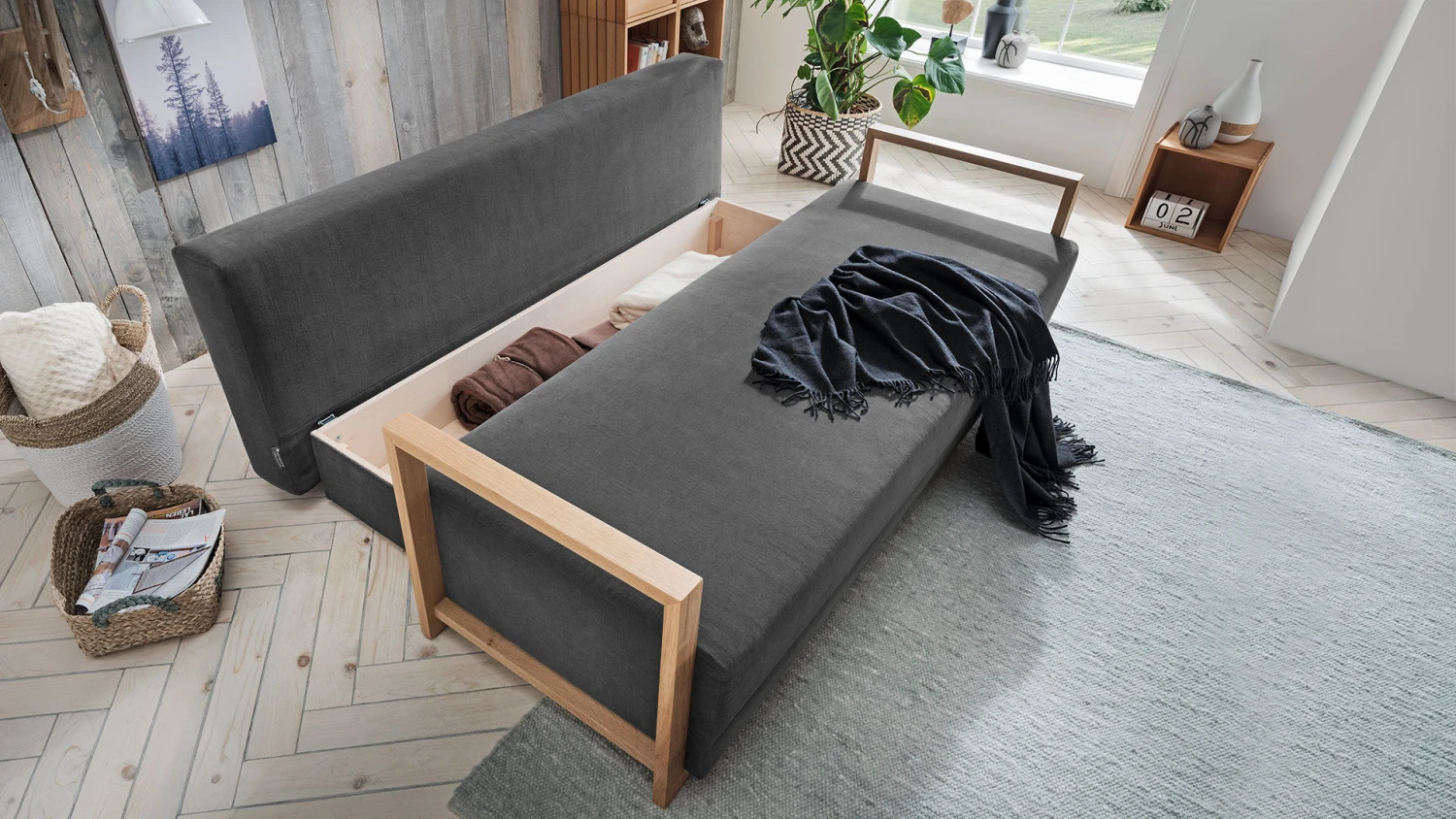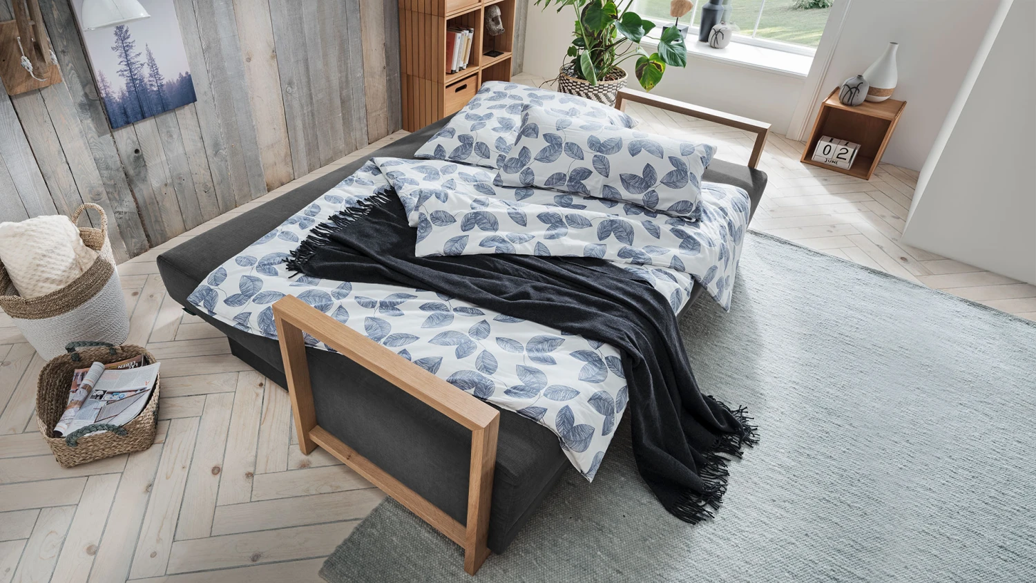 - Schlafsofa auch frei im Raum platzierbar, da Rückseite komplett mit Polsterstoff bezogen