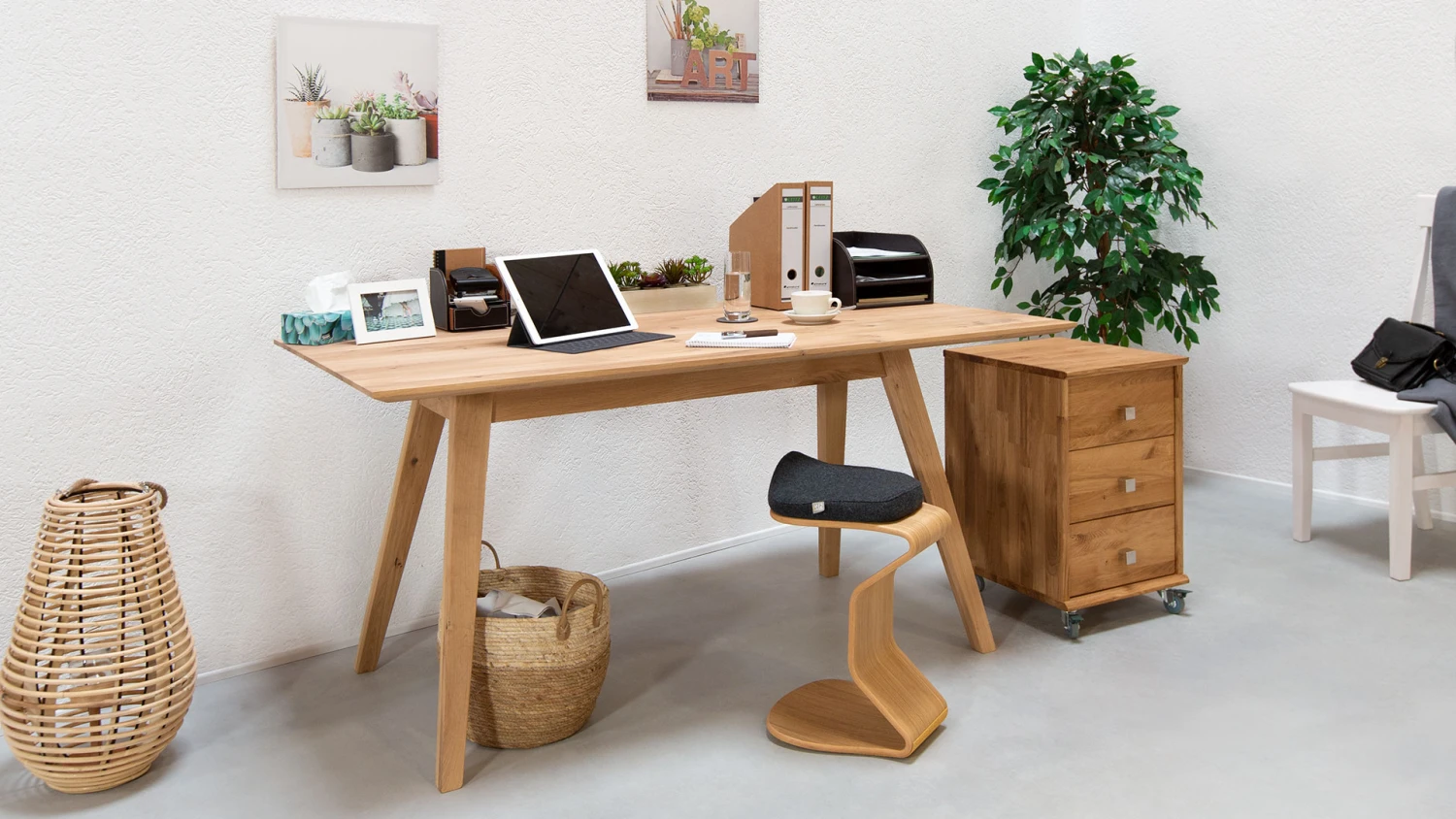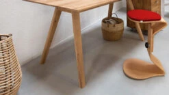 - filigrane, schräg verlaufende Tischbeine für optische Leichtigkeit