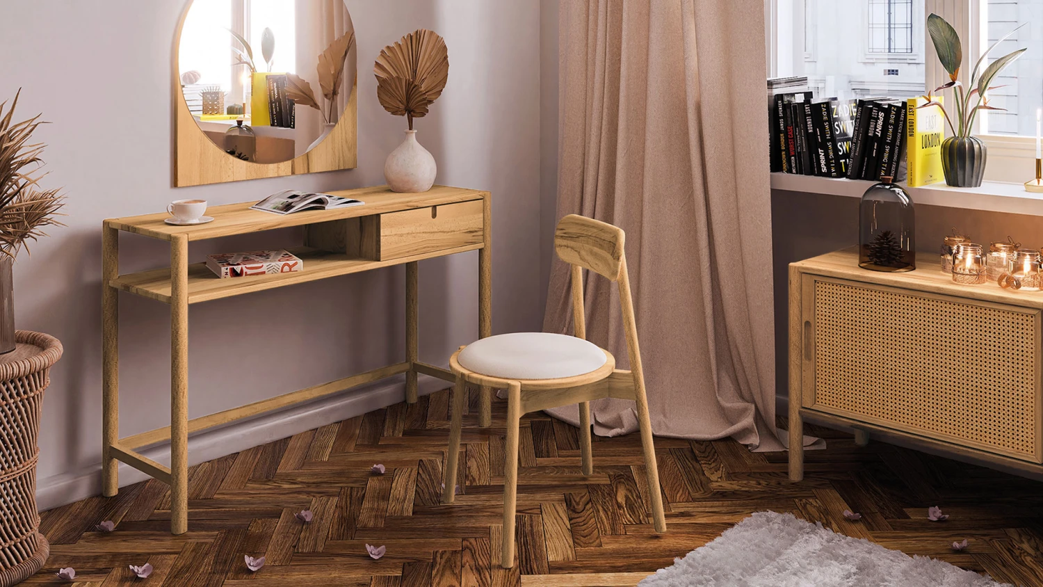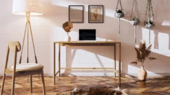 - minimalistischer Schreibtisch mit runden Säulenfüßen