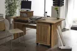 - Schreibtische mit überstehender Tischplatte und stabilisierender Quertraverse