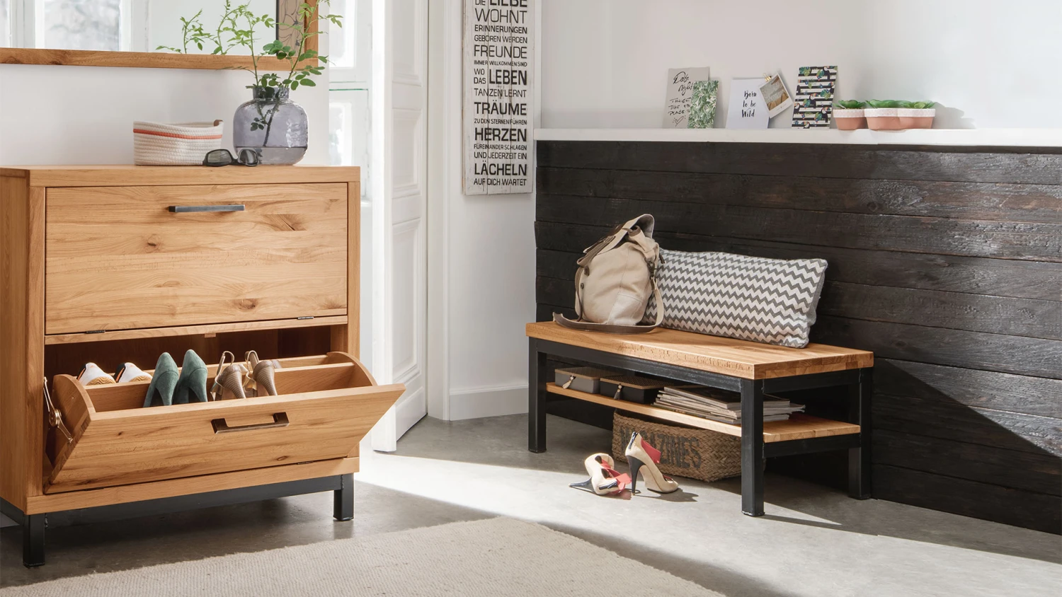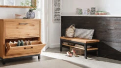 - edel-rustikale Schuhbank mit modernen Industriestil-Elementen