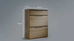 hoher, schlanker Schuhschrank mit 1 Schublade mit Softclose-Funktion, darunter 2 Schuhklappen, dahinter je 1 Fachboden fĂĽr bis zu 16 Paar Schuhe