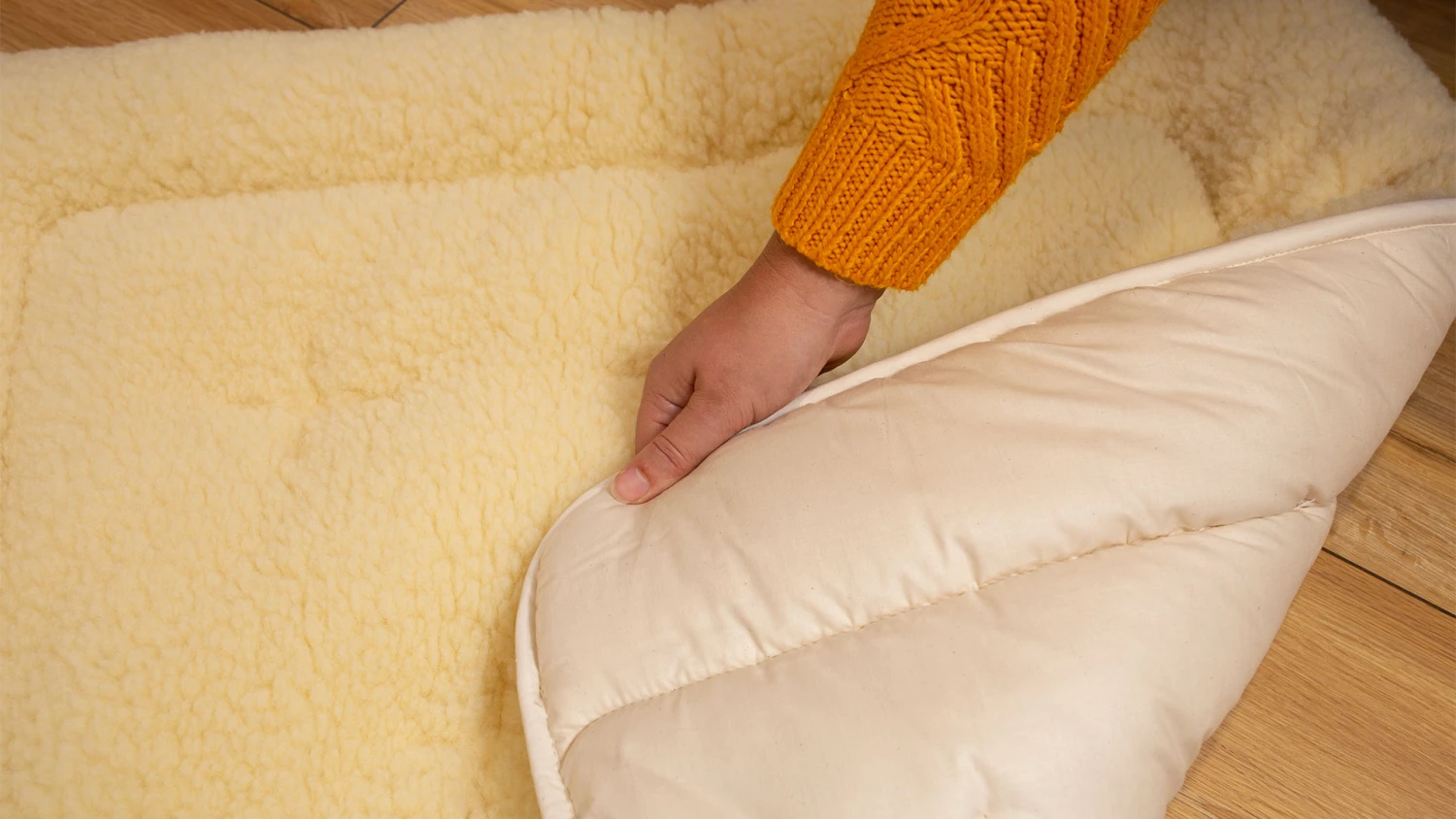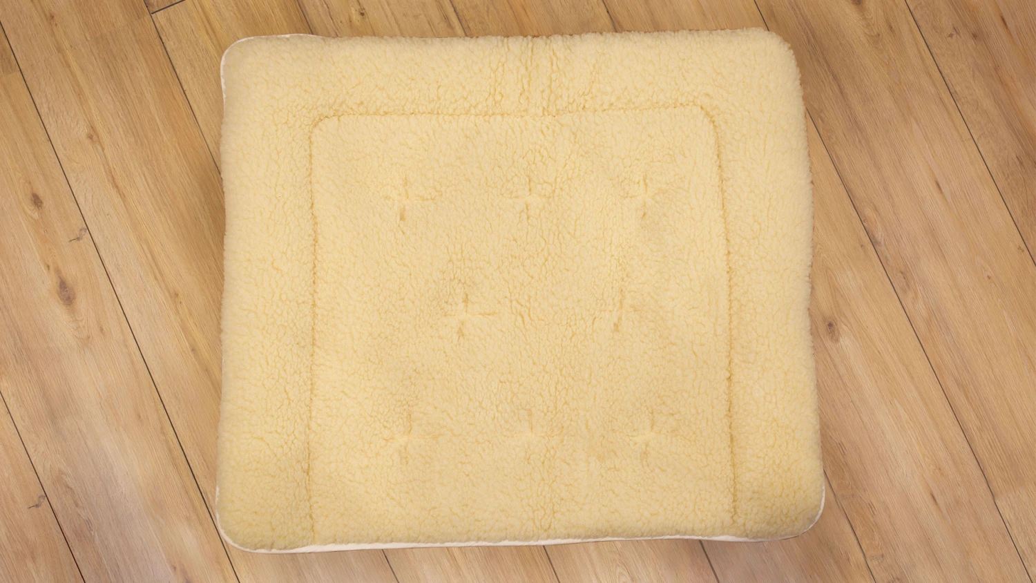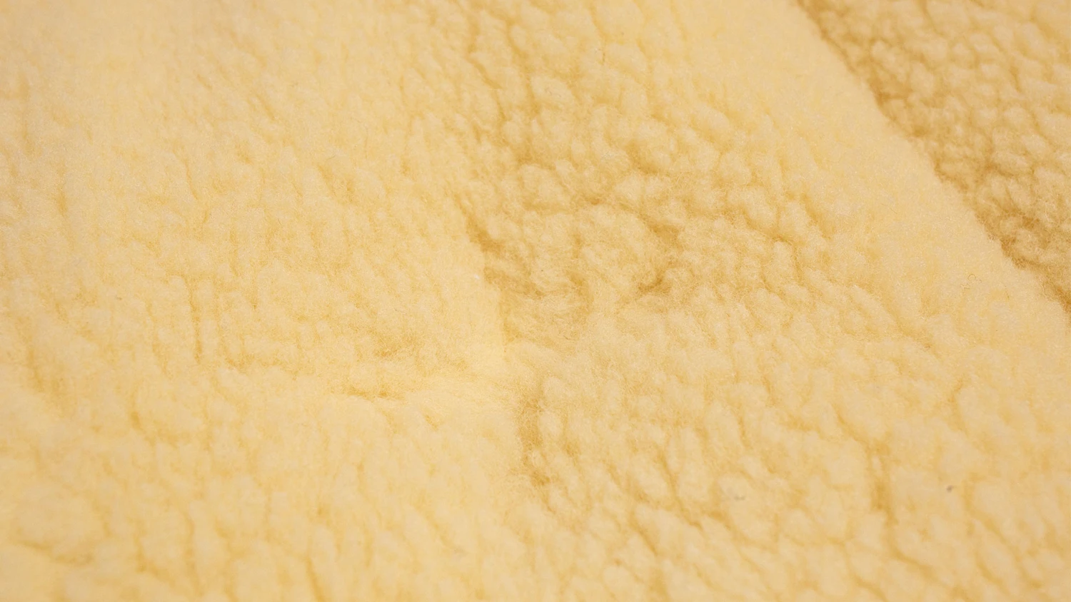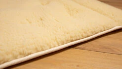 - Oberseite mit Flor aus reiner Schafschurwolle, Florhöhe ca. 20 mm, Grundgewebe aus 100 % Bio-Baumwolle/kbA