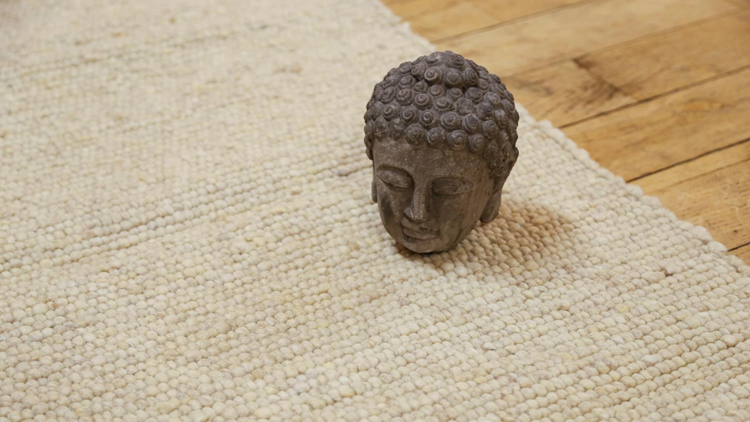 - Teppichgarn mit stabilisierender Seele aus Jutefasern, bauschig umsponnen mit kuschelweicher Schafschurwolle