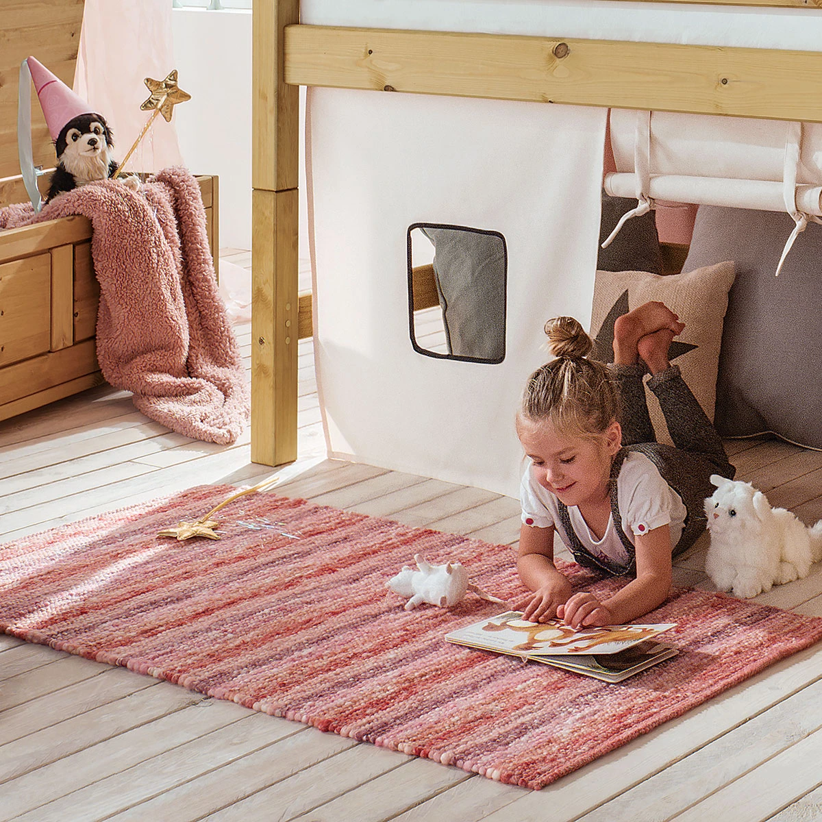 - handgewebter Schurwollteppich mit fröhlichen Farben für das Wohn- oder Kinderzimmer
