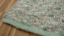 - flauschiger, harmonisch melierter Schurwollteppich, von Hand gewebt in schönen Grundtönen mit bunten Einsprengseln