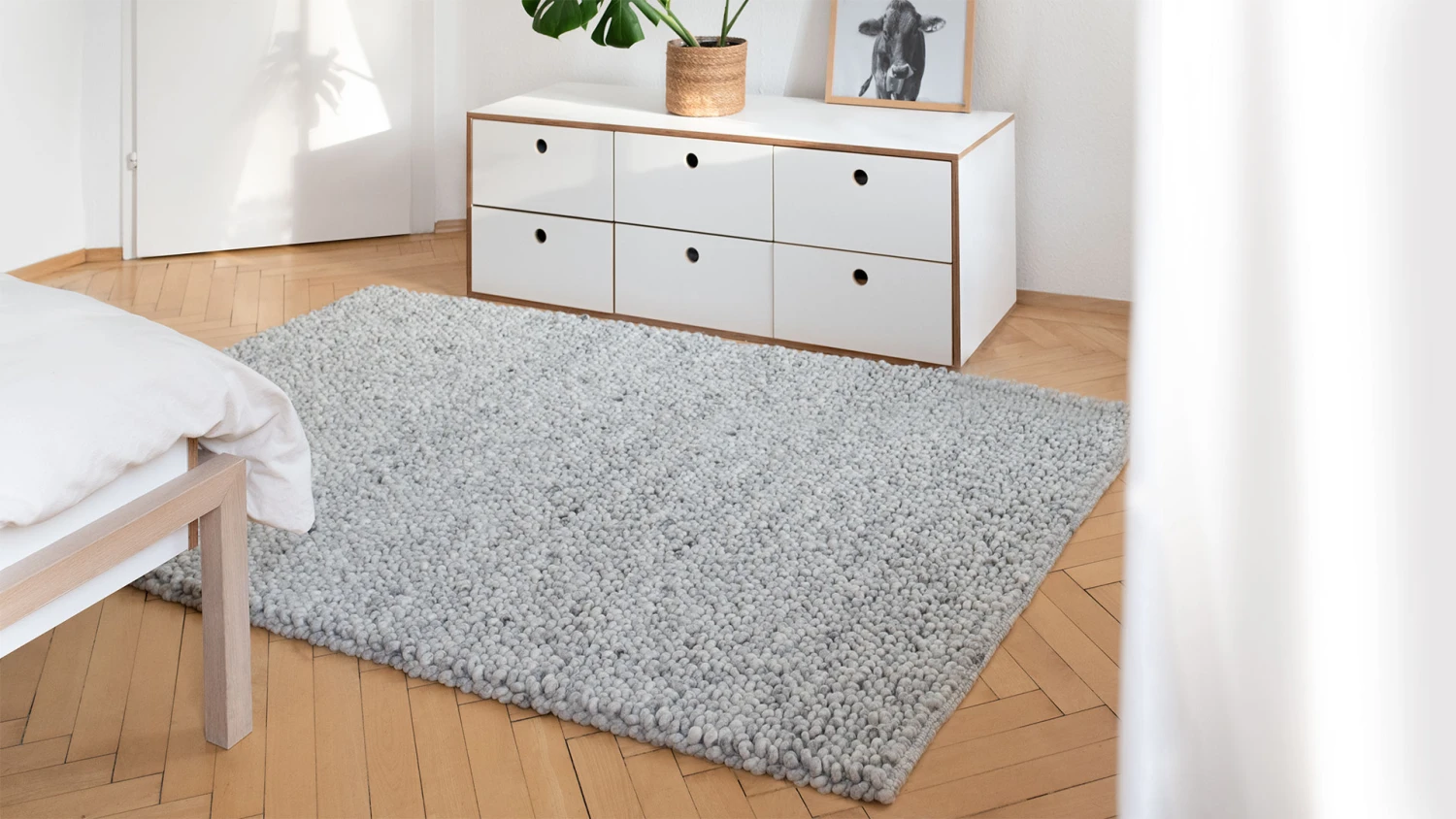 - geeignet für weniger begangene Flächen im Schlaf- und Wohnbereich – für stark beanspruchte Flächen empfehlen wir einen Teppich in sehr robuster, gewalkter Qualität