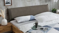 rechteckiges, bequem gepolstertes Kopfteil (Kaltschaum-Polsterung) mit edlem Leinenbezug in natur oder anthrazit, bequem geneigt - Kopfteil „ohne“