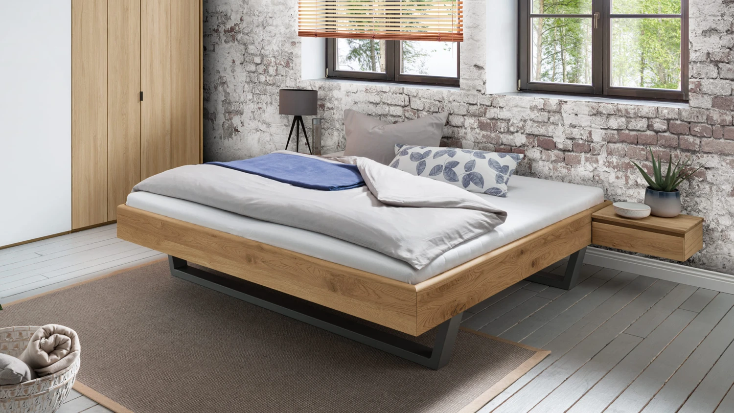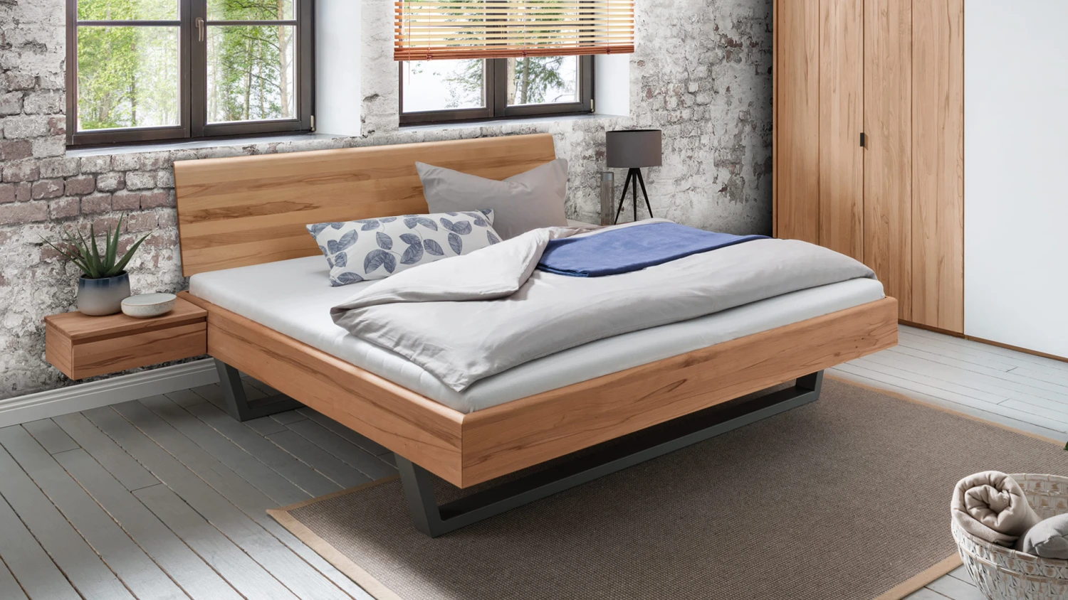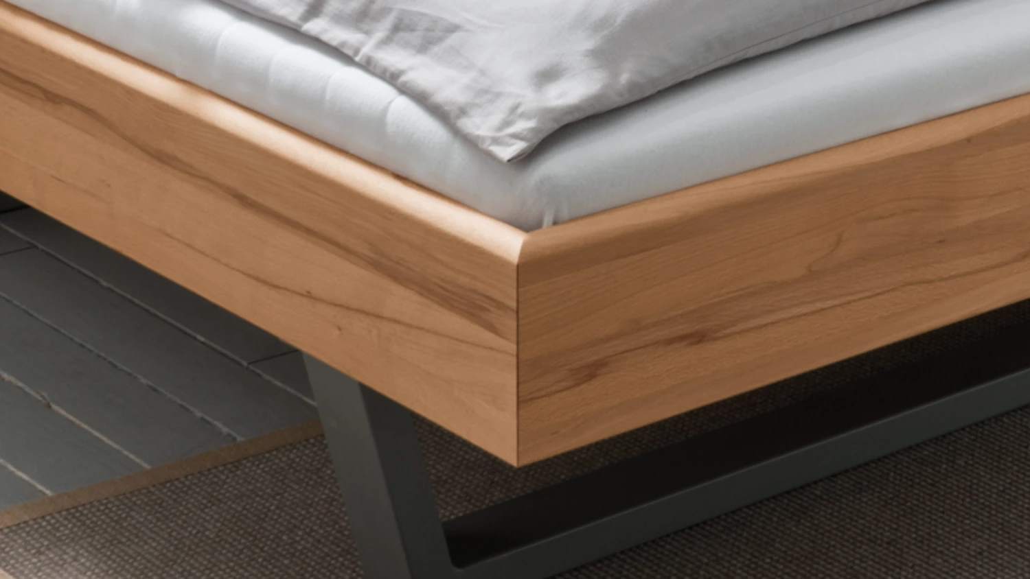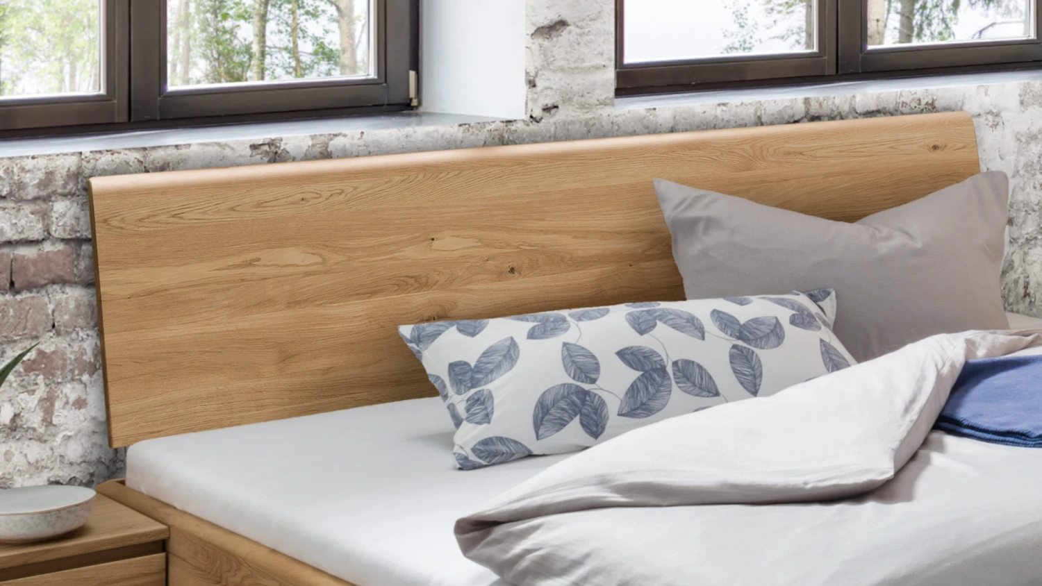 großflächiges, rechteckiges Kopfteil, das die Eigenarten der einzelnen Hölzer gekonnt präsentiert, bequem geneigt - Kopfteil „ohne“