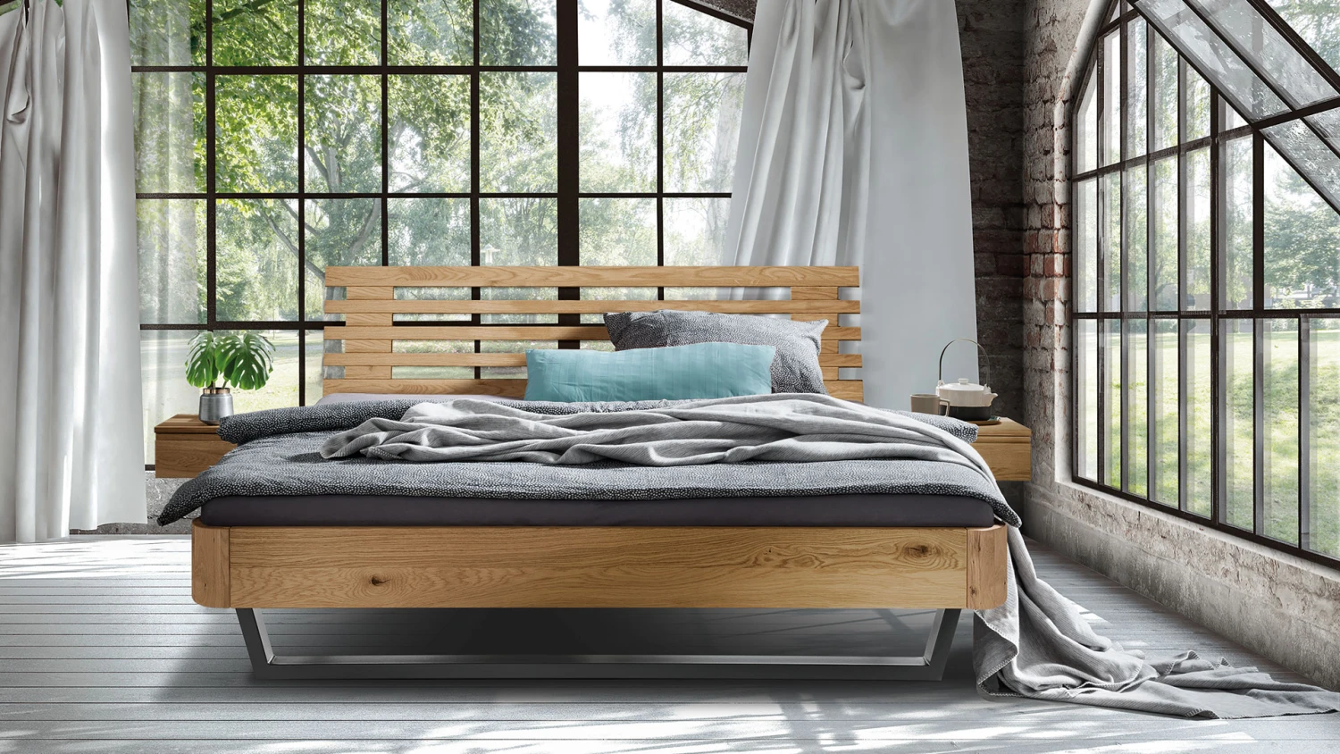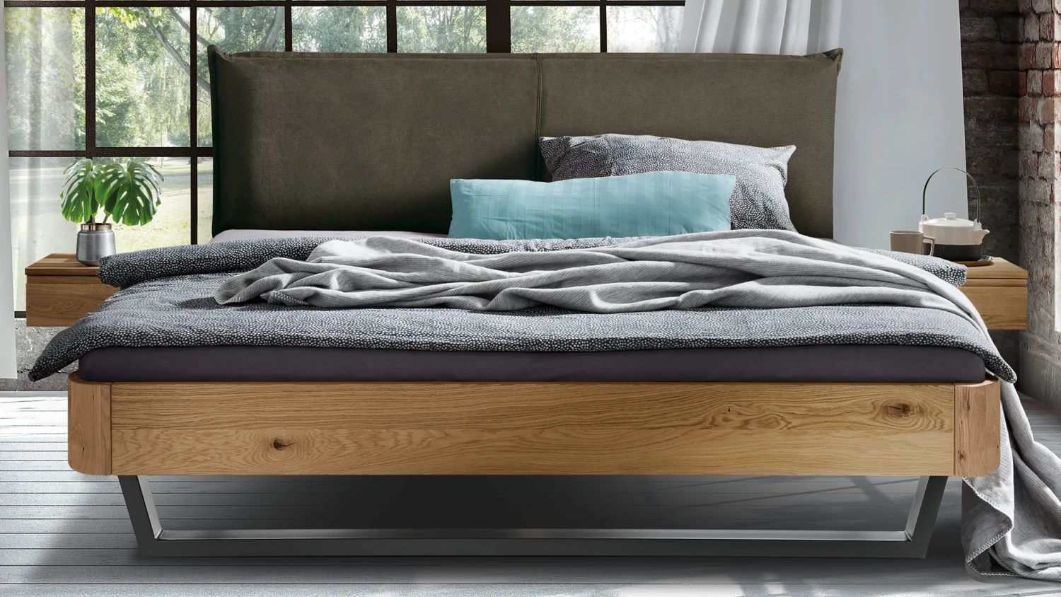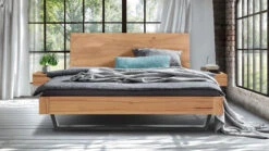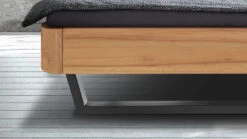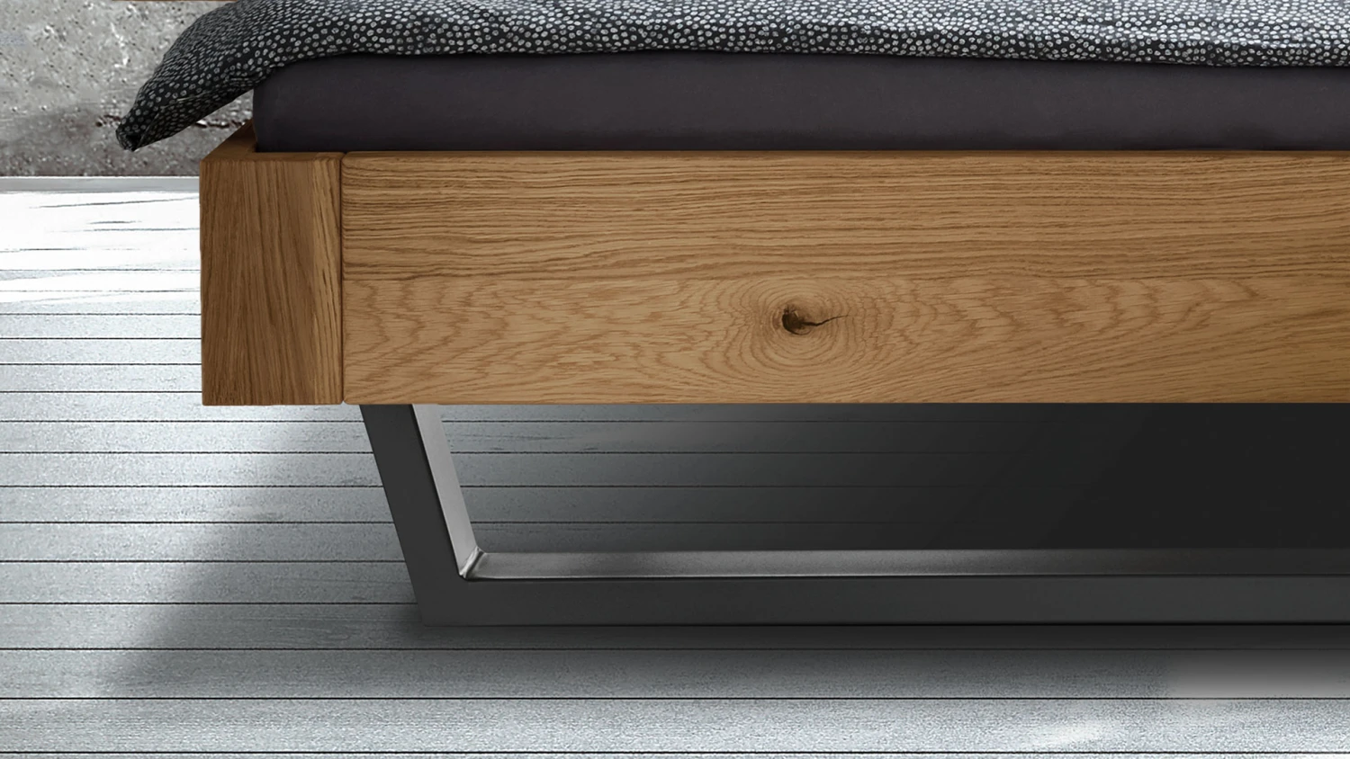 - eckige oder sanft gerundete Bettrahmen-Verbindungen, gegenläufig zum Bettrahmen gemasert