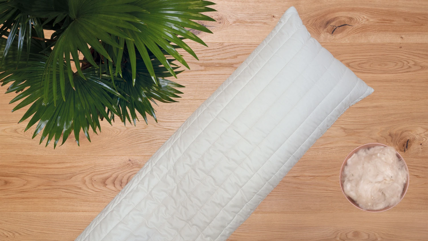gefĂĽllt mit kleinen KĂĽgelchen aus 100 % naturbelassener kbT-Schafschurwolle und Latexflocken aus 100 % Naturkautschuk - Kapok