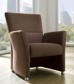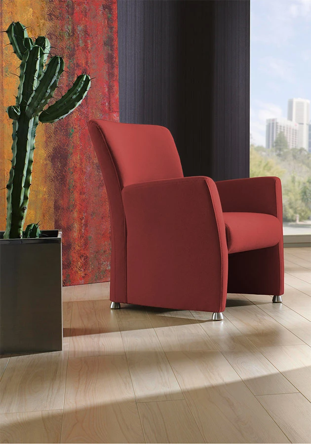 - Sessel mit hoher RĂĽckenlehne und bequem nach auĂźen gebogenen Armlehnen