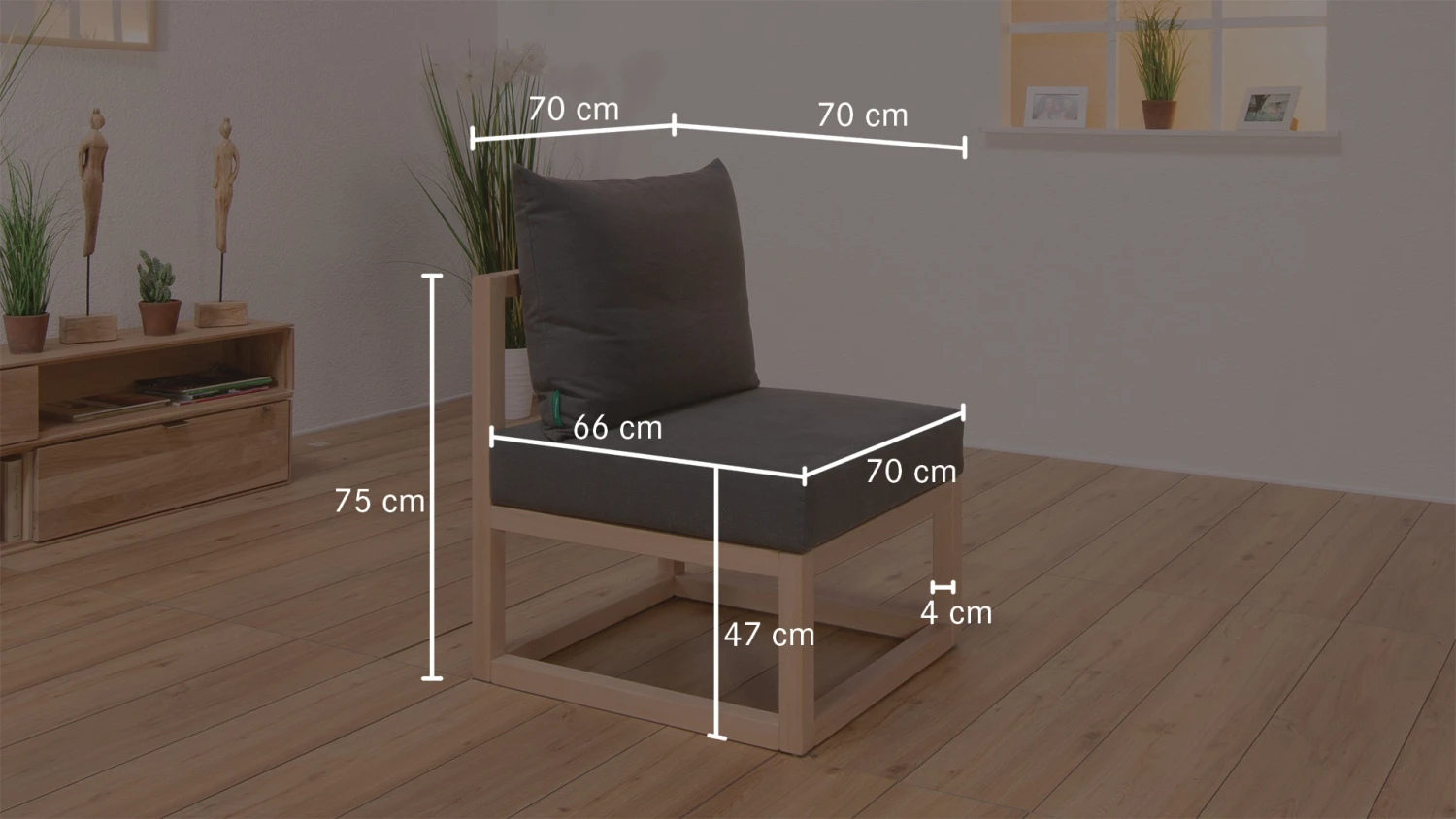 - abnehmbare Sitzkissen aus Kaltschaum – Unterbau mit stabilem Rahmen aus Buchenholz und Kreuzgurtung