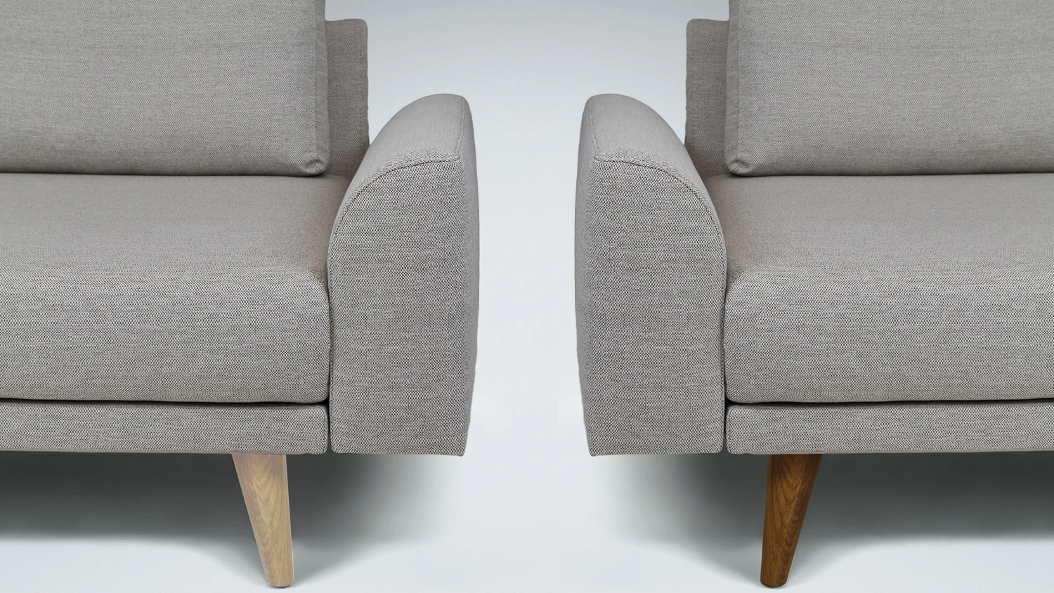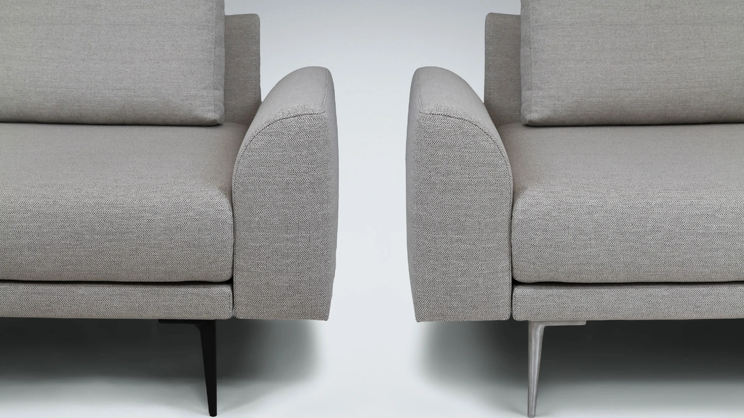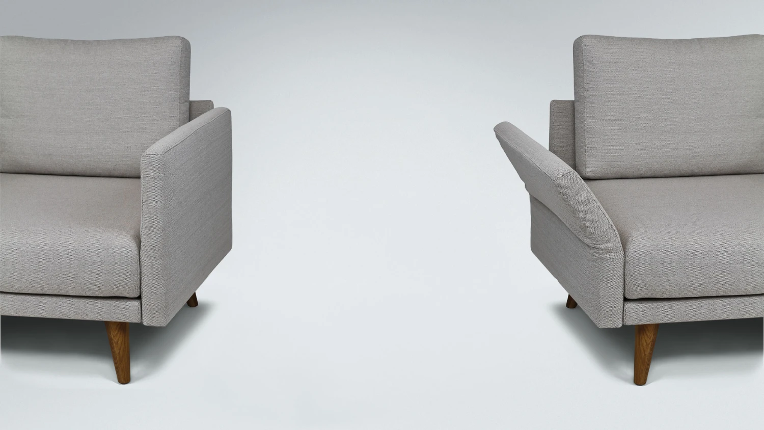 - 4 Armlehnvarianten – 2 niedrige, breite Armlehnen mit halbrundem oder kubischem Abschluss, 2 hohe, schlanke Armlehnen, wahlweise starr oder klappbar