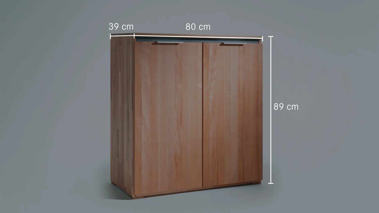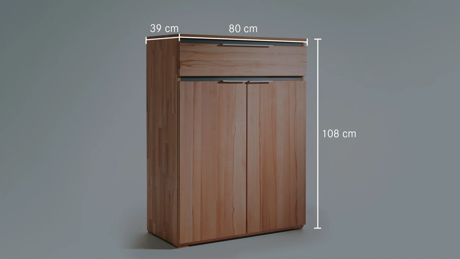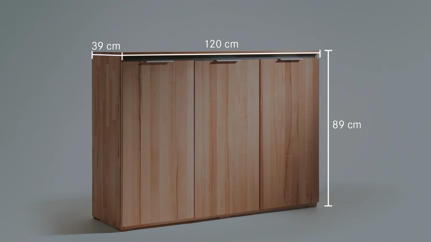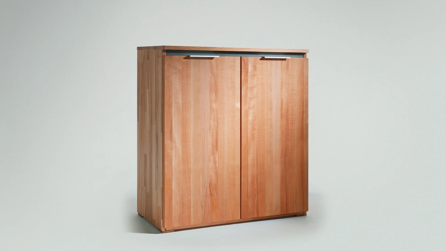 - geradlinige, stabverleimte Fronten, die der beschwingt gemaserten Kernbuche die perfekte BĂĽhne bieten