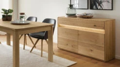 - das gebĂĽrstete Eichenholz an den Applikationen ist ein ganz besonderer Blickfang