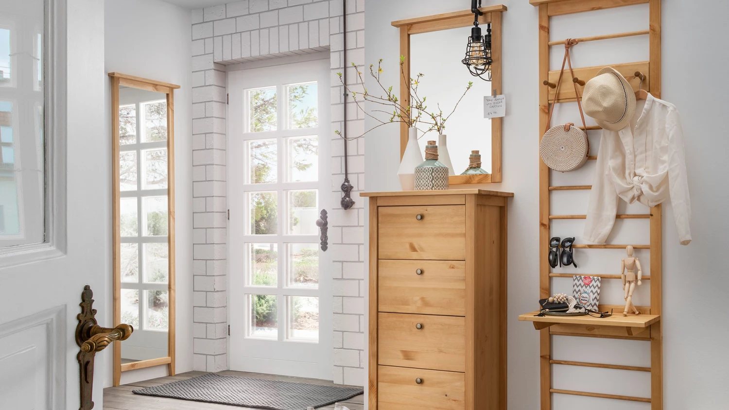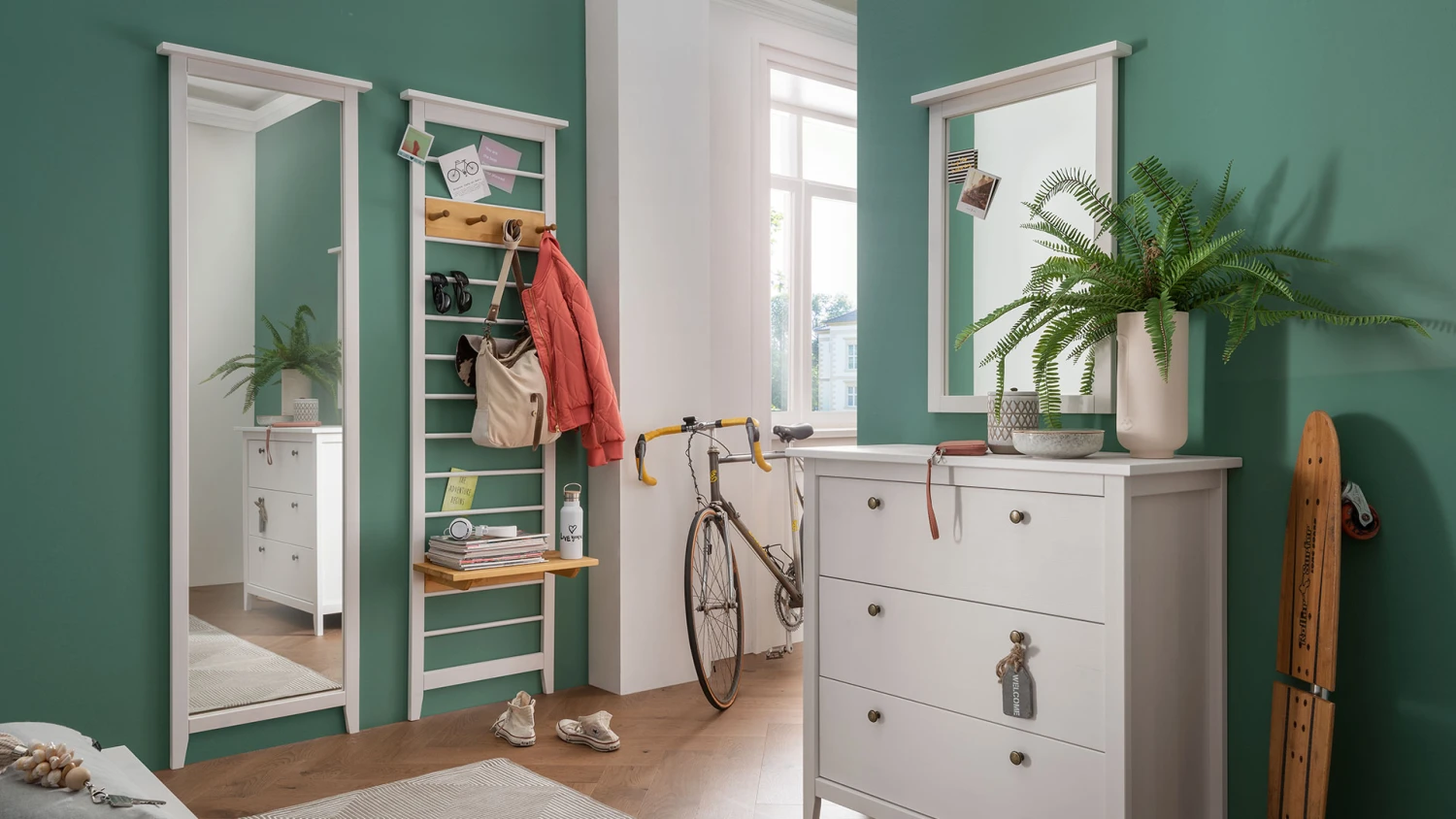 - markanter Spiegel mit breitem Massivholz-Rahmen