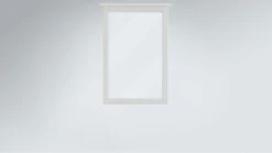 - moderner Stil dank oben leicht überstehendem Rahmen