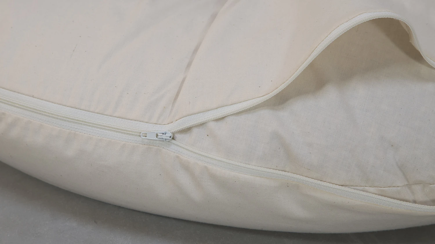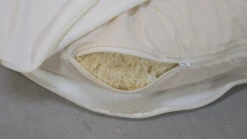 kleinen KĂĽgelchen aus 100 % naturbelassener kbT-Schafschurwolle mit Naturlatex-Flocken aus 100 % Naturkautschuk (ca. 70 % Schurwoll-KĂĽgelchen und 30 % Latexflocken) - waschbarer AuĂźenbezug im von Natur aus schönen Crèmeton ungebleichter Baumwolle – wahlweise