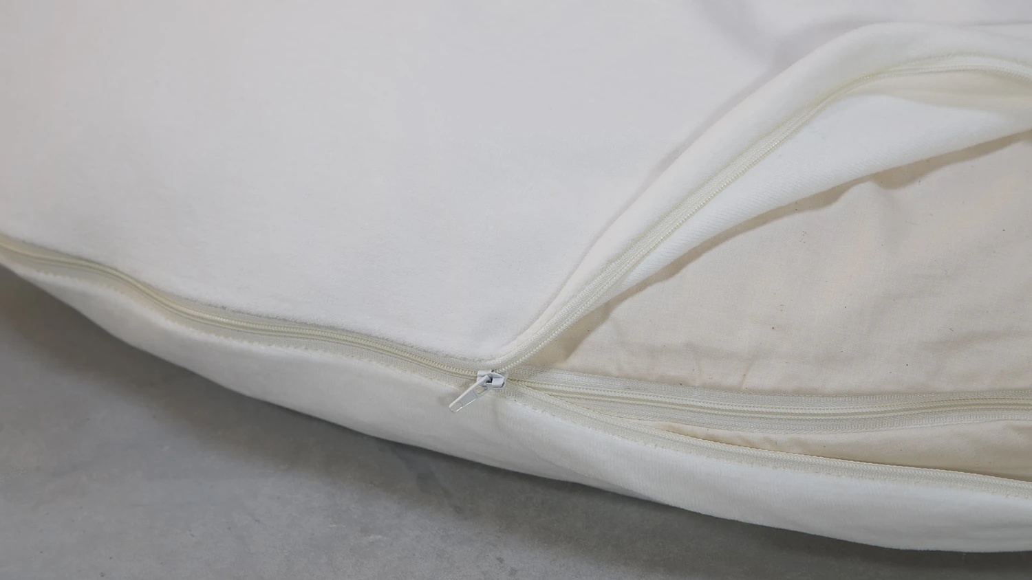 weicher Nickiplüsch aus 100 % Bio-Baumwolle/kbA - separater Innenbezug feinfädiger Öko-Perkal aus 100 % Bio-Baumwolle/kbA mit Reißverschluss an der Innenseite