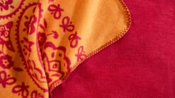 - in leuchtendem Rot mit orangegoldenen Ornamenten
