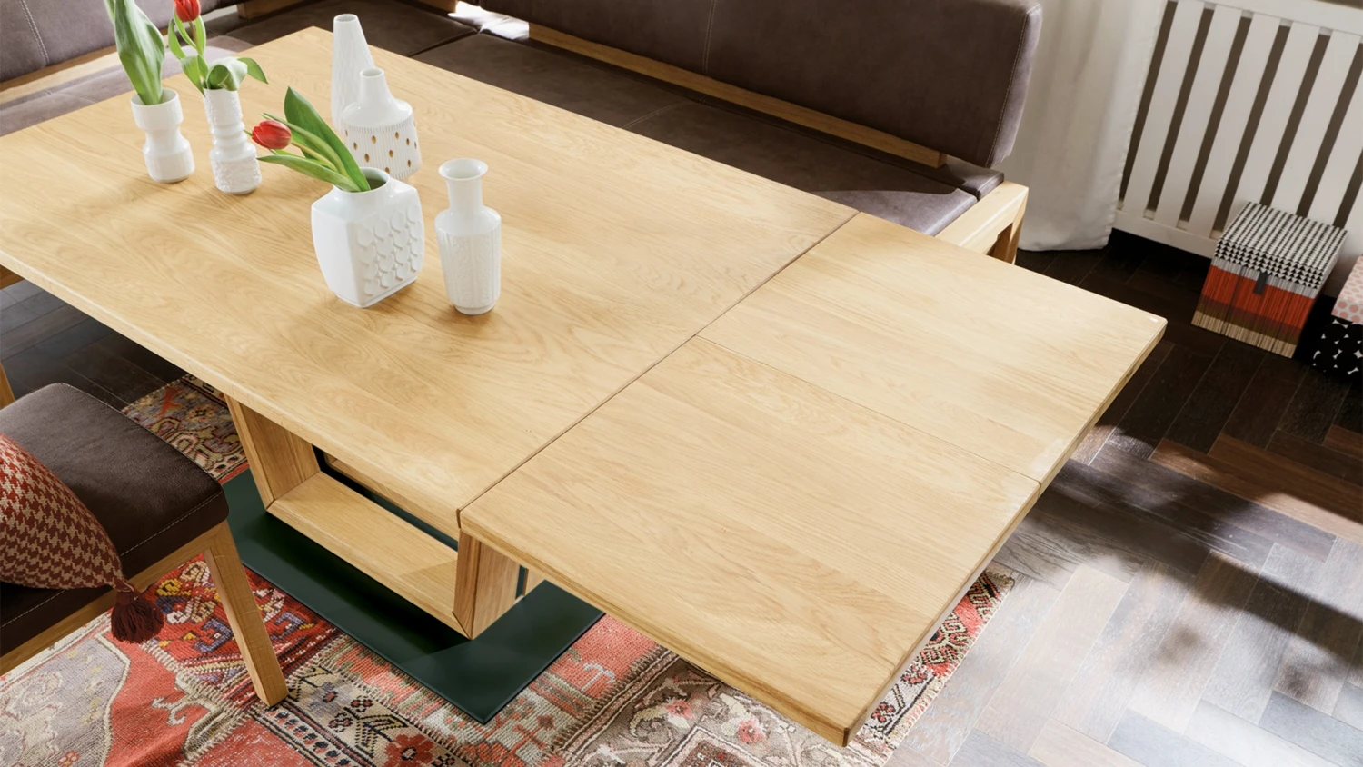 - optionales Auszugs-System beidseitig erst ab Tischlänge 180 cm möglich