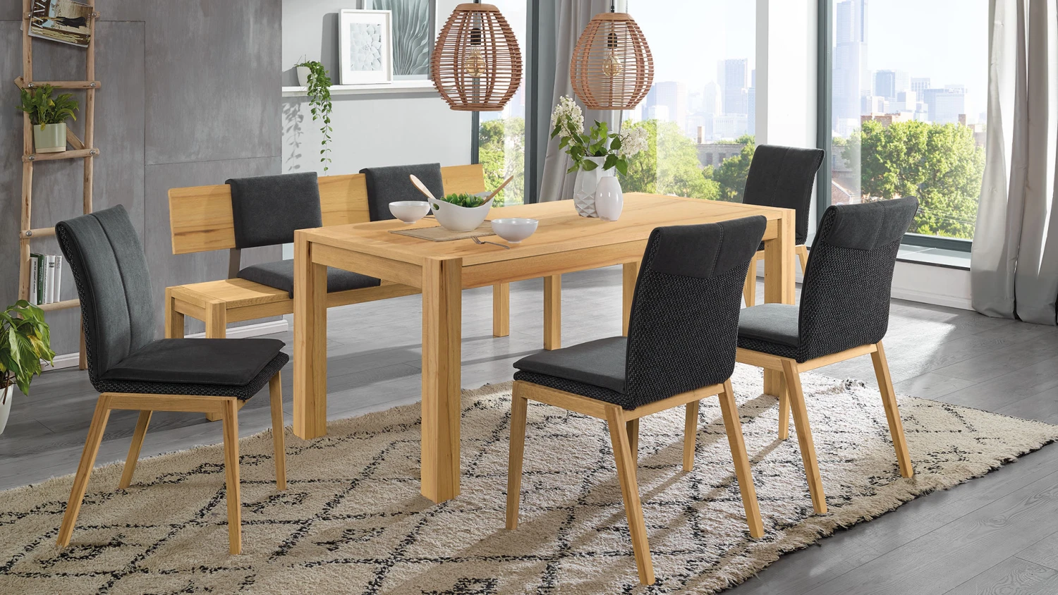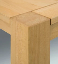 - Tischbeine aufwändig von oben sichtbar in die Tischplatte integriert mit eleganter Stirnholzoptik