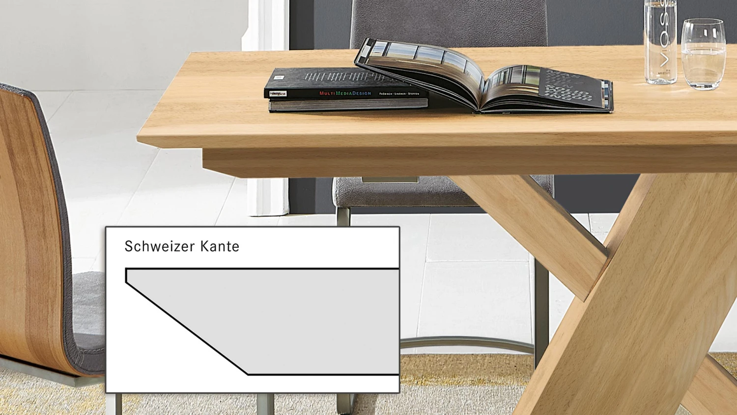 - aufgesetzte Tischplatte mit Schweizer Kante
