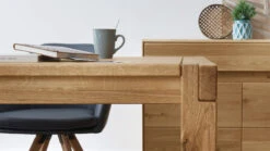 - aus massivem Wildeichenholz, aufwändig stabverleimt mit durchgehenden Lamellen