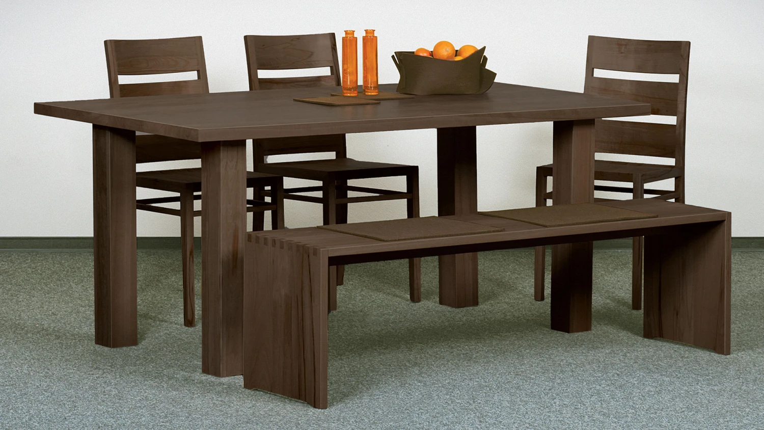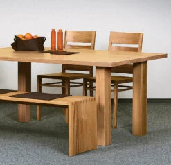 - kantige Tischbeine in markanter Stärke, stark nach innen versetzt