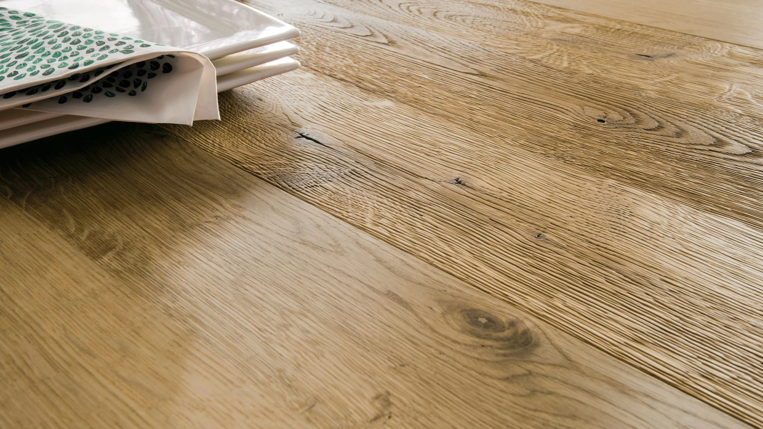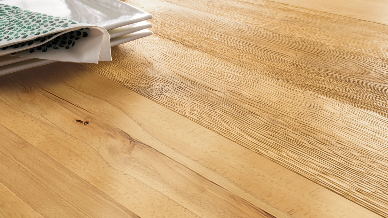 - besonders eindrucksvoll in Holzart Wildkernbuche – sorgfältig selektiertes Kernbuchenholz mit sehr lebhafter Maserung, Rissen und Ästen verleiht „Senera“ einen extravaganten Charakter