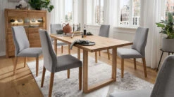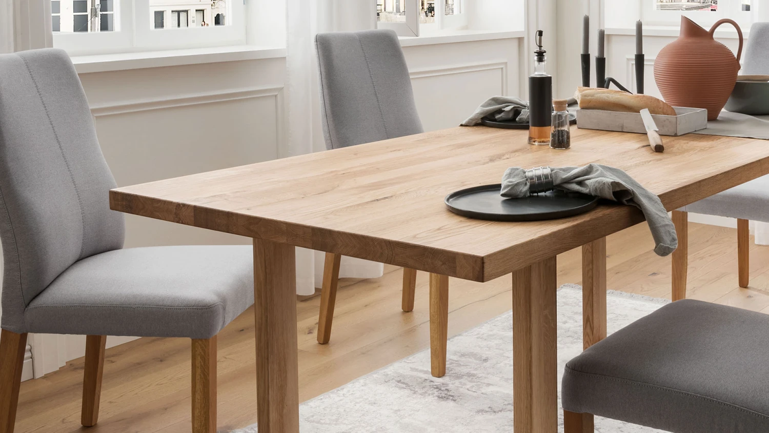 - aus massivem Wildeichenholz, aufwändig stabverleimt mit durchgehenden Lamellen
