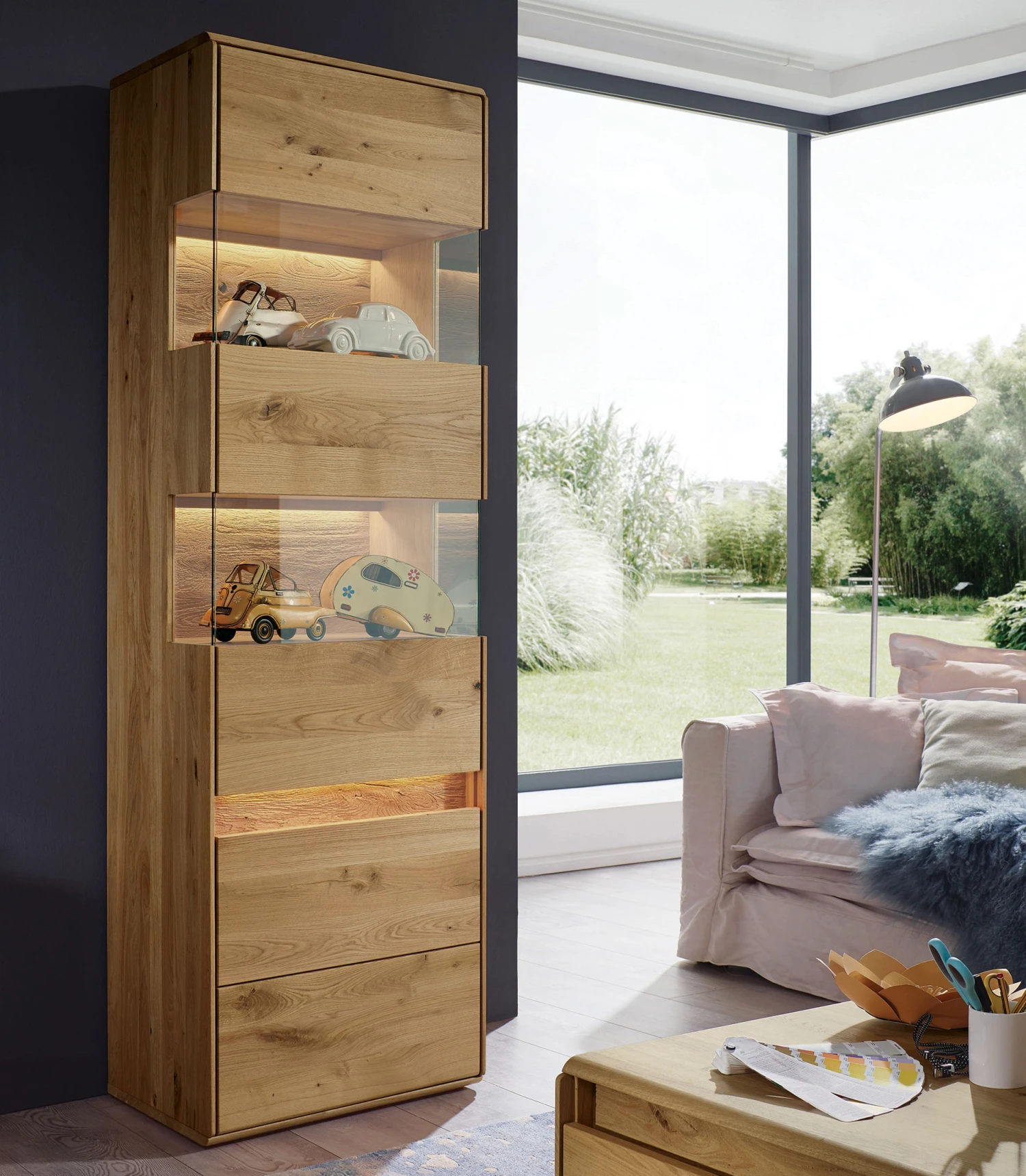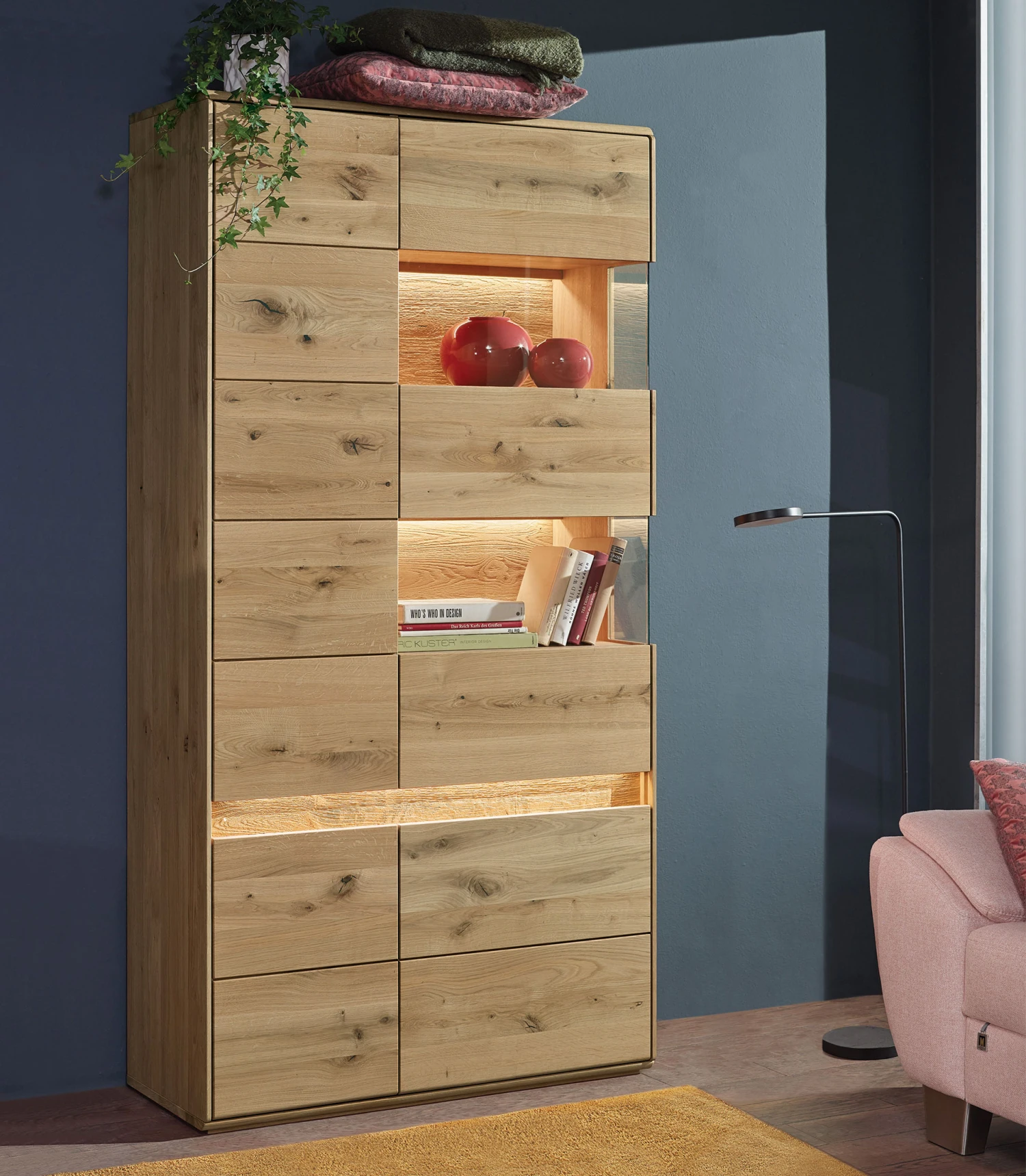 - sichtbare Rückwände und Applikationen aus gebürstetem Eichenholz
