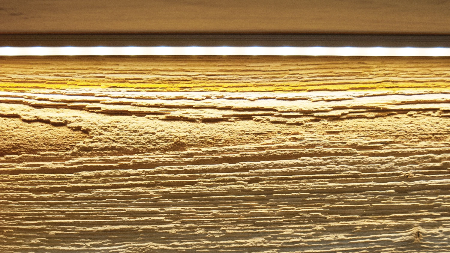 - das gebĂĽrstete Eichenholz an den Applikationen ist ein ganz besonderer Blickfang