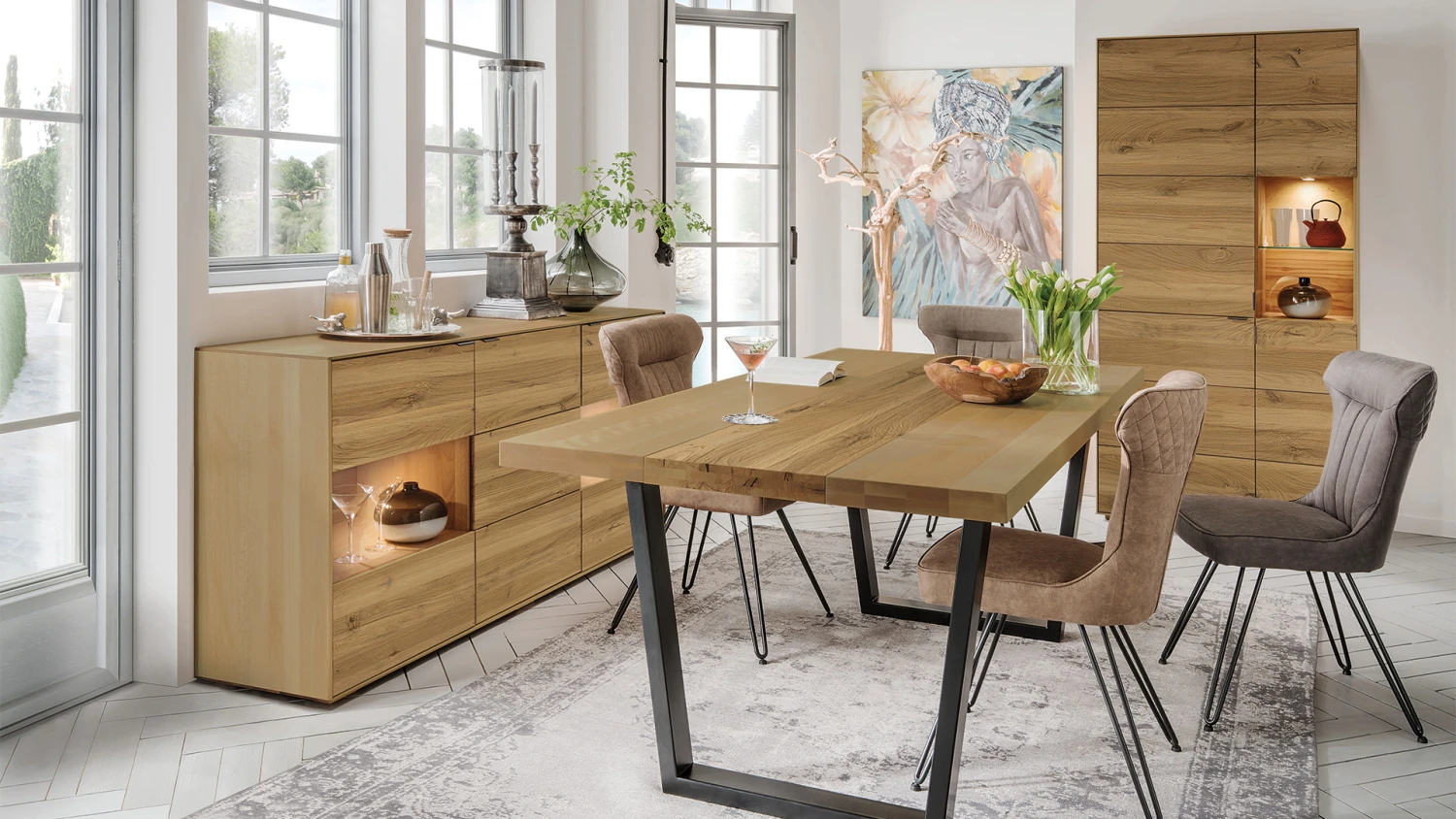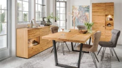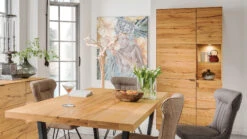 - besonders eindrucksvoll in Holzart Wildkernbuche – sorgfältig selektiertes Kernbuchenholz mit sehr lebhafter Maserung, Rissen und Ästen verleiht „Senera“ einen extravaganten Charakter