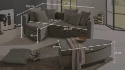- moderne, wandelbare Couchlandschaft, auch als Lounge-Sofa mit groĂźer Sitztiefe stellbar